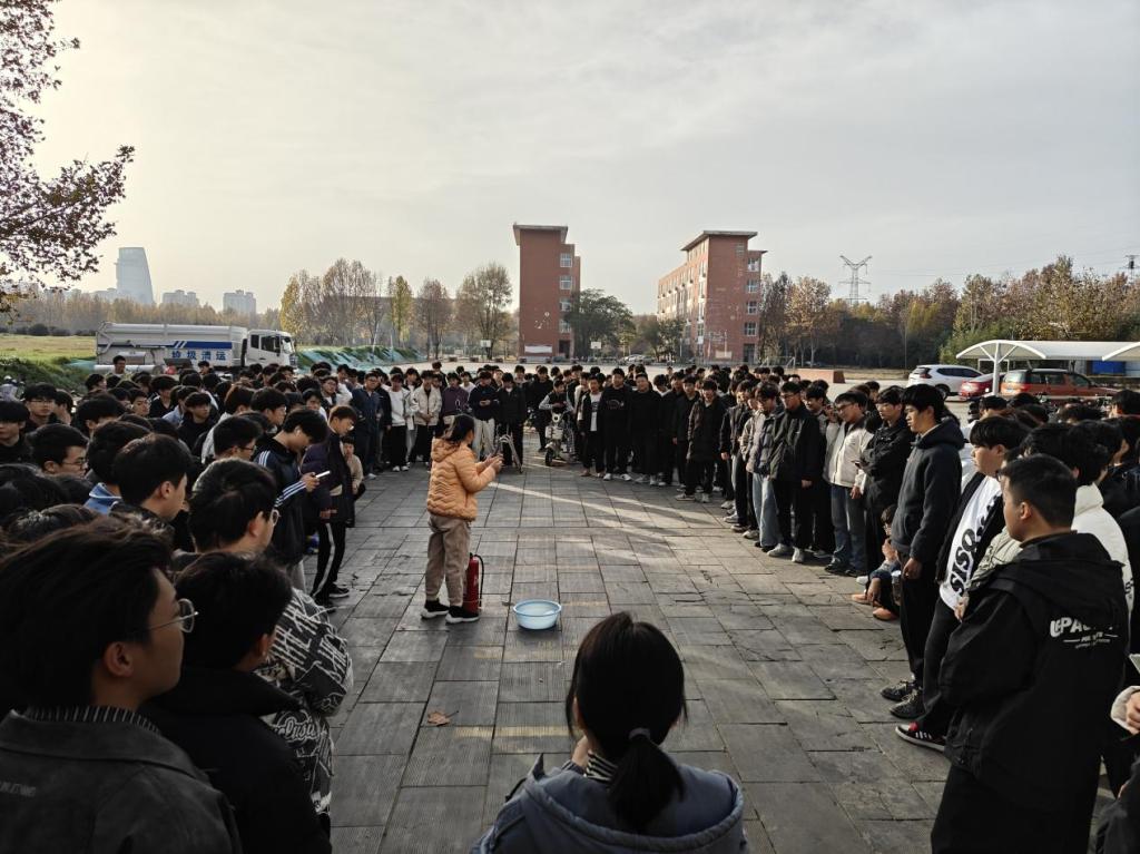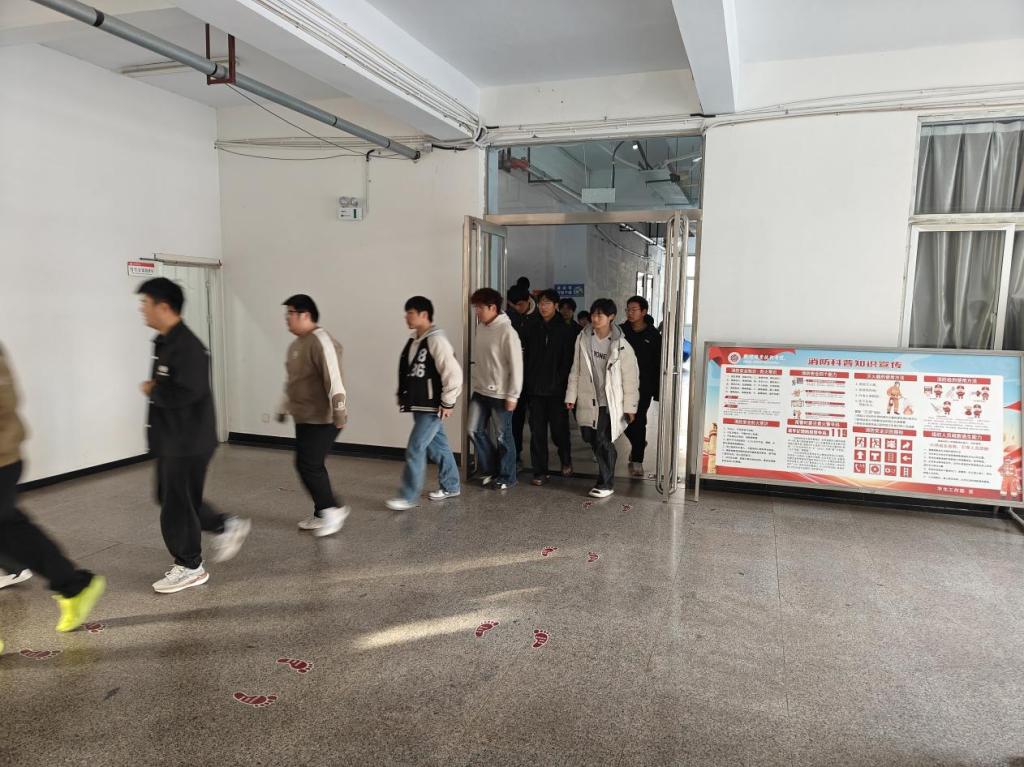 哨声吹响,演练正式开始。同学们在辅导员和员工会干部引导下,从就近安全出口沿楼梯右侧有序疏散,2分钟内全部撤离至安全点。随后,辅导员按班级清点人数,确认全员到齐后向现场指挥部汇报。演练全程高效规范,达到预期效果。演练结束后,宿舍管理员对消防器材的使用进行培训,提醒员工注意宿舍卫生与消防安全。最后,姚红艳总结此次演练全体师生反应迅速、配合默契,展现出良好的应急处置与团队协作能力。她强调消防安全无小事,提醒师生珍爱生命,积极学习消防知识、掌握基本技能,方能防患于未然。