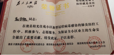 2018级员工柳梦阳,在淇滨区泰山路街道和黎阳路街道居委会做疫情防控志愿者。