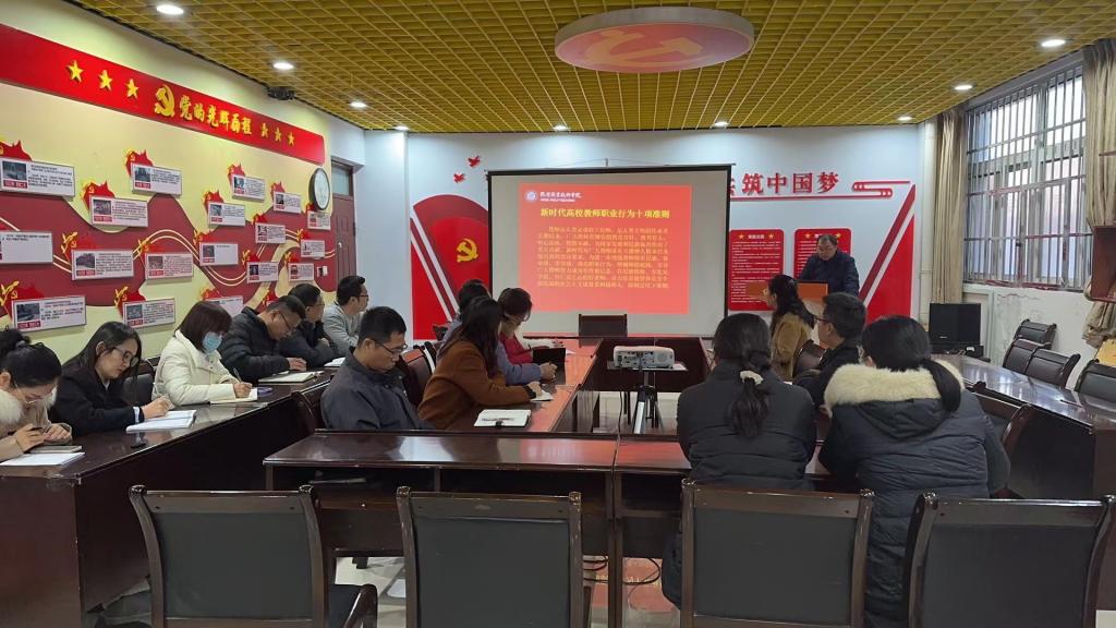 窦明从师德的内涵、当前教师师德师风存在的问题、新时代加强师德师风建设的路径进行了深度解析。讲座内容丰富、见解独到、生动翔实,对于帮助广大教师坚定理想信念、厚植爱国情怀、涵养高尚师德、改进教学方法具有指导意义。讲座结束后,全体教职工共同复习了《新时代高校教师职业行为十项准则》具体内容。