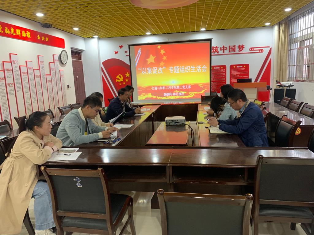 10月26日下午,交通与材料工程公司教工党支部在三楼党员活动室召开“以案促改”专题组织生活会。支部全体党员参加会议。会议由教工党支部书记张守花主持。