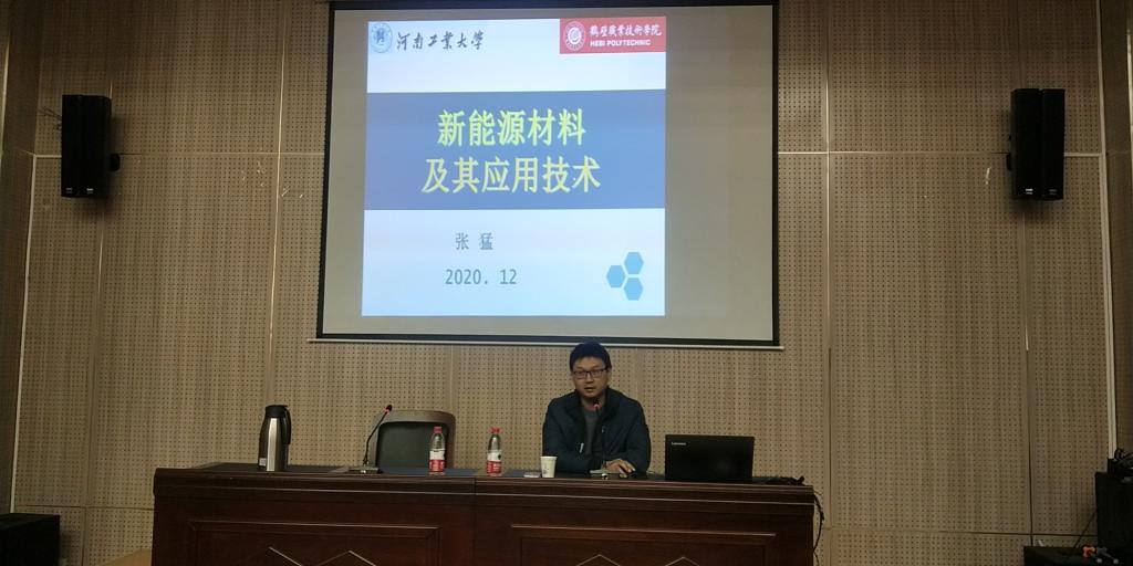 2020年12月10日下午16:30,河南工业大学张猛教授在公司海棠园二号报告厅为公司100多名光伏发电技术及应用专业师生作题为《新能源材料及其应用技术》科研讲座。讲座由交通与材料工程公司副经理窦明主持。