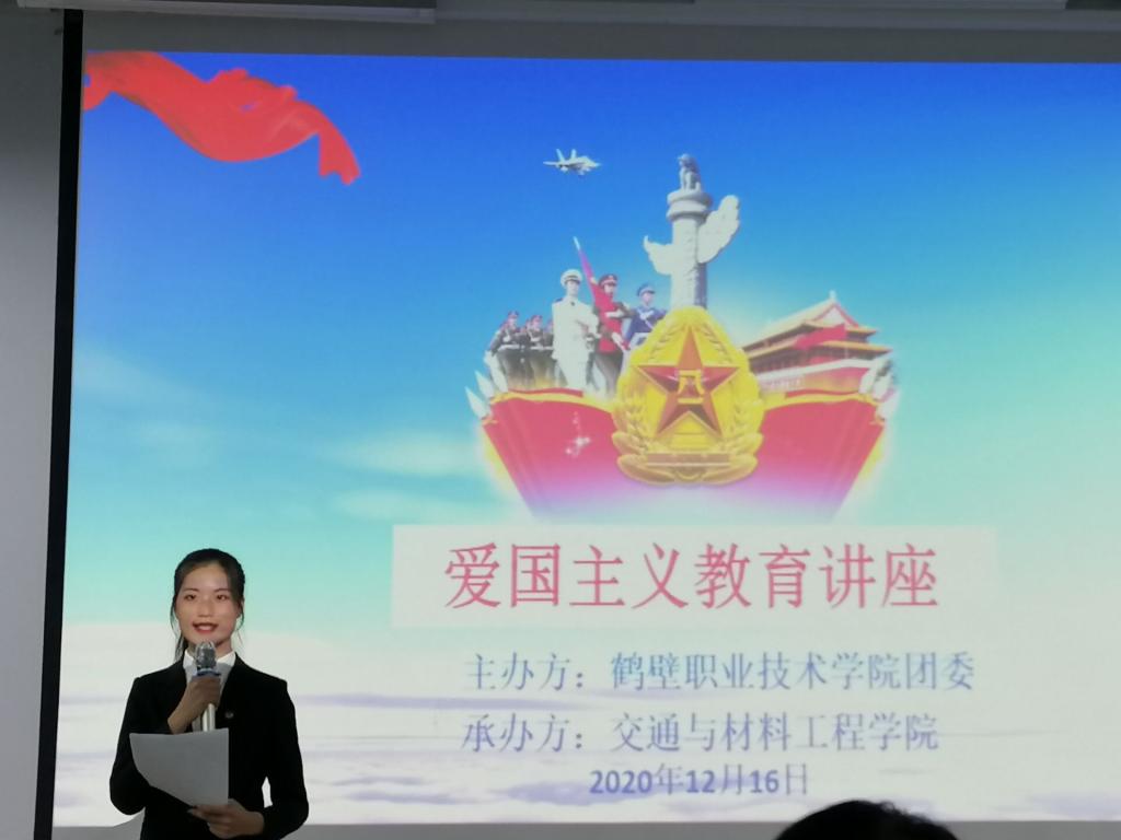 12月16日下午,由304永利集团团委主办,交通与材料工程公司承办的“爱国主义教育”主题讲座在拓新楼2楼阶梯教室举行。鹤壁市国家经济技术开发区渤海路办事处工委书记亓国杰和《军港之夜》中的“年轻水兵”鹤壁市外事办退休干部陈洪堂分别以《那年那月那场战争》和《一位水平的故事》为题进行了热情洋溢的爱国主义教育报告。交通与材料工程公司教师代表及各院系员工代表200余人参加。