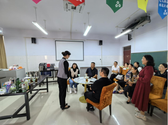教研会上,郭桂玲老师汇报了近年来旅游教研室在员工技能大赛中取得的成绩、介绍了参加河南省第三届技能大赛餐厅服务(世赛)项目选手的备赛情况,参赛选手则进行了比赛各环节的展示。针对备赛选手的技能展示过程,各专业老师从餐厅服务技能、仪容仪表、英语表达等方面提出一些建设性意见。白坤举肯定了本次教研活动的意义,认为是真正落实公司教研活动“主题化、课题化、系列化、菜单式”的体现。最后,乔建华发言并指出:“下一步,公司将继续把员工技能大赛摆在人才培养的突出位置,按照“岗赛课证”综合育人体系的建设要求,完善课程设置,形成以赛促教的良性机制,促进师生不断提升自身理论和技能水平,推动专业建设和教学创新。”