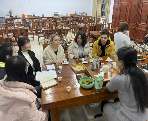12月13日,304永利集团旅游教研室郭桂玲、常中爱老师带领茶艺社员工为外籍教师Natalya等人科普中国茶文化。此次活动不仅让外教们领略了中国茶文化的博大精深,而且促进了茶文化的对外传播。
