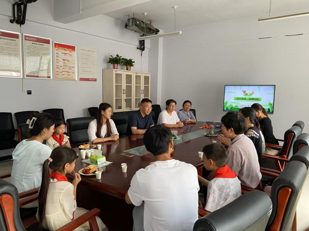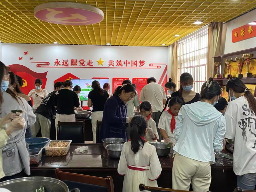 首先,师生共同观看了端午节宣传片,重温端午节的由来、各地节日风俗及爱国诗人屈原的故事。活动现场,糯米、花生、红枣、绿豆、粽叶等材料有序摆放,在教师的示范下,经过粽叶折叠、食材填入、粽叶包裹、绳线捆扎等工序,一个个小巧的粽子顺利成型。小员工在留守儿童志愿服务队员精心指导下兴趣盎然、干劲十足。师生们分工协作、配合默契,在欢声笑语中交流包粽技巧,纷纷展示劳动成果,现场气氛热烈而温馨。粽子蒸煮期间,茶艺志愿服务队队员熟练展示泡茶技巧。接着,在粽香与茶香中,交通公司、杨晋庄小学师生进行座谈。罗宏燕谈到由于教育资源、家庭经济条件等原因目前农村小学存在生源少、留守儿童多的问题。乔建华了解了4名留守儿童的学习、生活情况,表示要发挥高校优势,留守儿童志愿服务队将对留守小员工开展“一对一”学业指导、心理纾困、生活帮扶等活动。