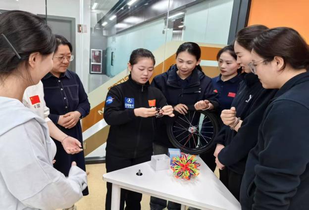 活动现场,公司团队展示了自主研发的“角动量与航天应用”研学课程,以航天器姿态控制、卫星轨道力学等为切入点,通过车轮实验、指尖陀螺实验等沉浸式教学场景,将抽象物理原理转化为可感知可触及的实践课程。豫见宇宙航天探索中心团队(鹤壁研学旅行产教联盟成员)同步呈现“火箭工程实践课”,双方围绕课程标准制定、研学实践环节优化、团队交流机制等相关内容展开深度研讨。