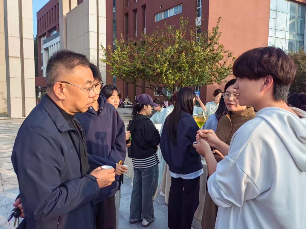 活动现场布置有序、展示有致,吸引了数百名师生前来参与。首先,茶艺指导教师围绕茶叶的起源、分类、冲泡技艺等内容进行详细讲解。随后,从观察绿茶的鲜嫩到红茶的醇厚,从盖碗的持握手法到水温的精准控制,参与活动的师生在舒缓的音乐中沉浸式体验了茶叶的冲泡过程。